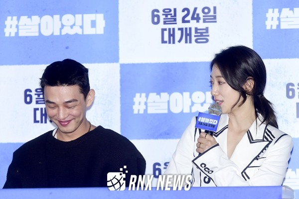 영화 #살아있다(감독 조일형 유아인 박신혜) 언론시사회가 15일 오후 서울 건대 롯데시네마에서 열렸다.