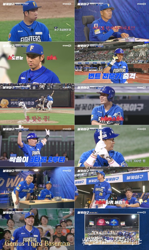 어제(24일) 오후 8시 스튜디오C1 공식 유튜브 채널을 통해 공개된 야구 예능 프로그램 ‘불꽃야구’ 30화에서 불꽃 파이터즈는 5회 말 빅이닝을 터뜨리며 패기 넘치는 도전 팀 부산과학기술대학교를 4:10으로 제압했다.